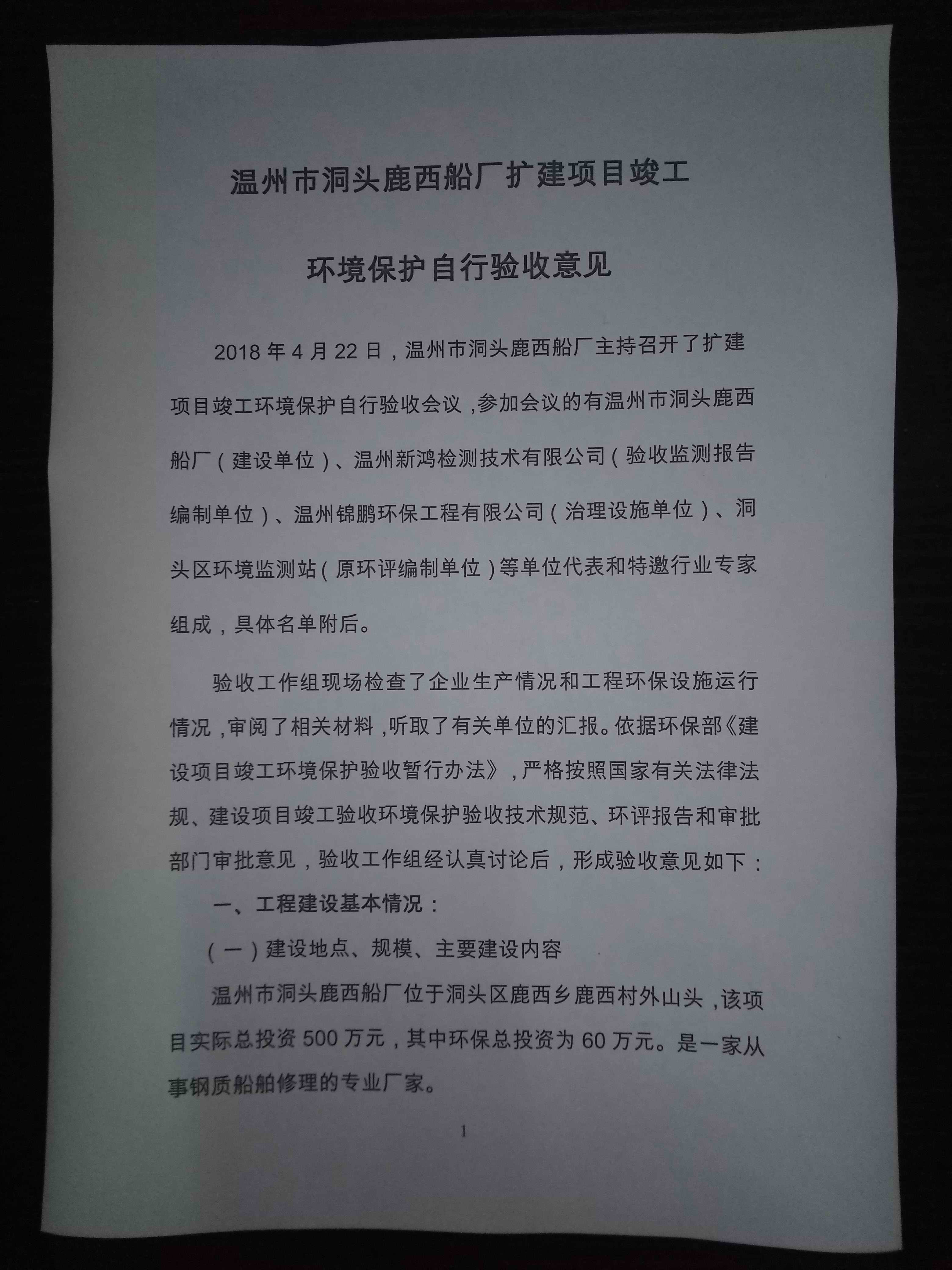 溫州市洞頭鹿西船廠擴(kuò)建項(xiàng)目竣工環(huán)境保護(hù)自行驗(yàn)收— —公示