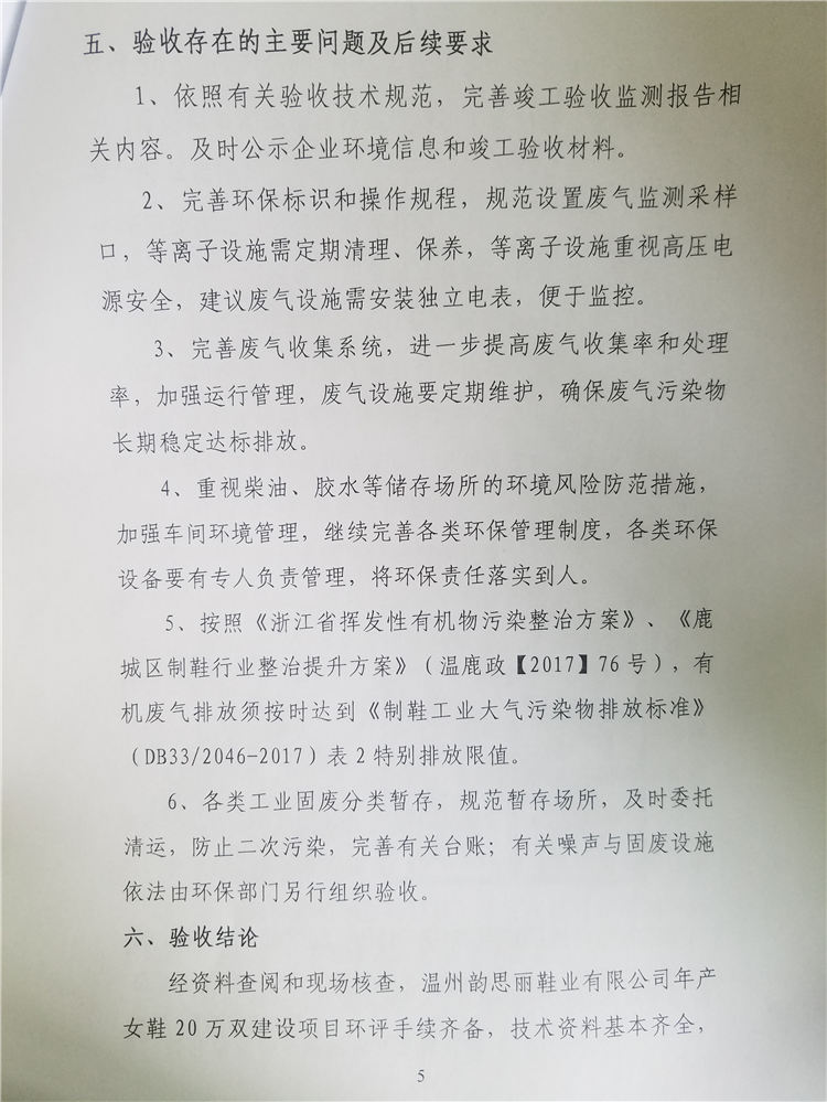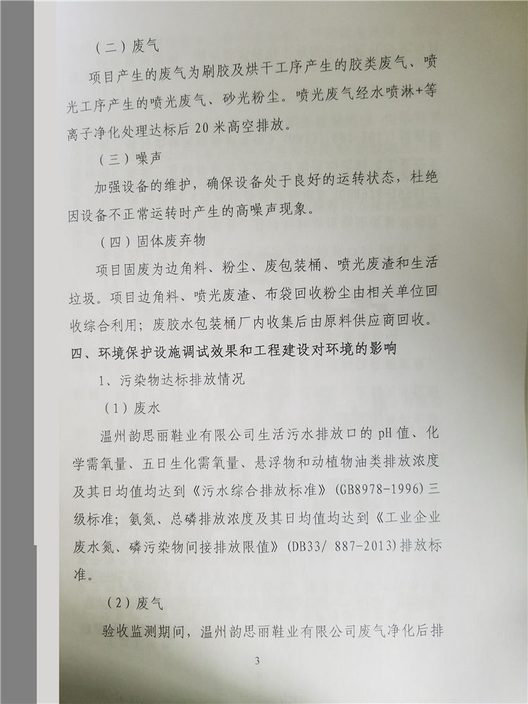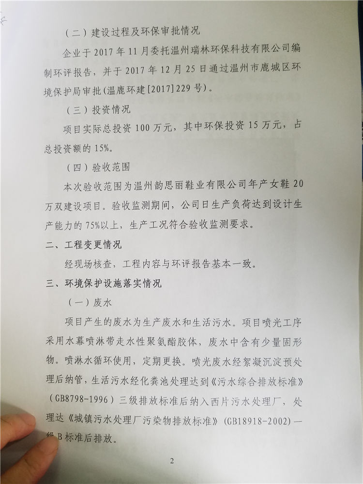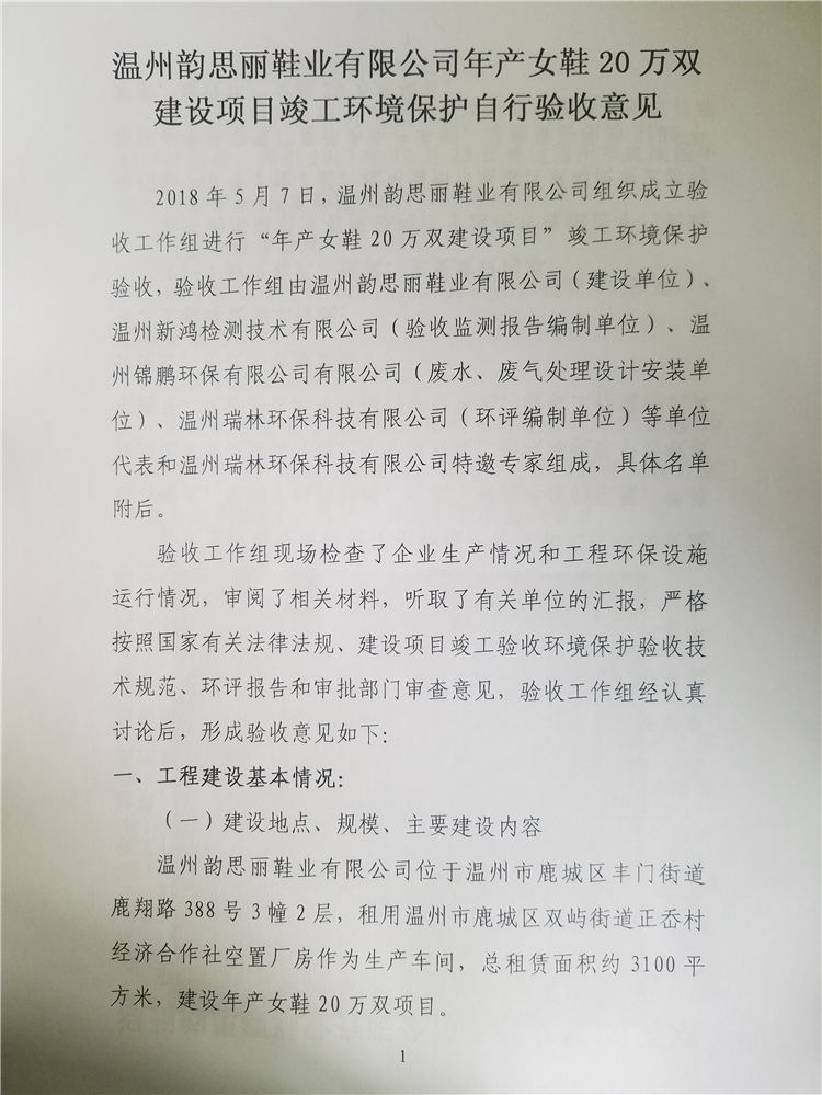 溫州韻思麗鞋業(yè)有限公司年產(chǎn)女鞋20萬雙建設(shè)項(xiàng)目竣工環(huán)境保護(hù)自行驗(yàn)收— —公示