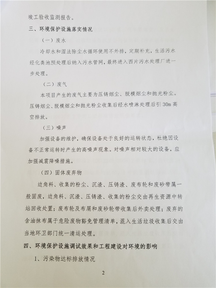 2、定期清撈除塵設(shè)施的水池沉渣,水池需加蓋,沉泥不能露天堆放;強化鋁壓鑄設(shè)備脫模劑的回收再利用系統(tǒng),防治地面污染;按相關(guān)要求做好工業(yè)固廢暫時貯存,補充固廢再利用協(xié)議和臺賬。