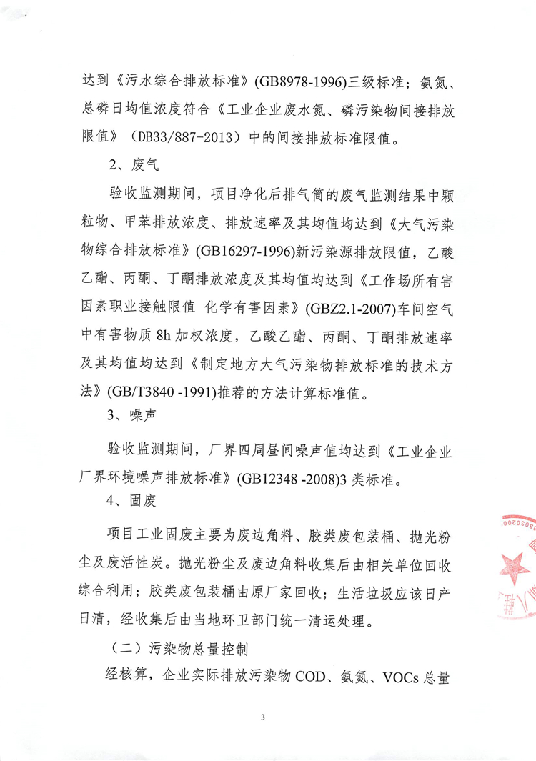 經(jīng)核算,企業(yè)實(shí)際排放污染物COD、氨氮、VOCs總量符合環(huán)評(píng)報(bào)告提出的總量控制值。