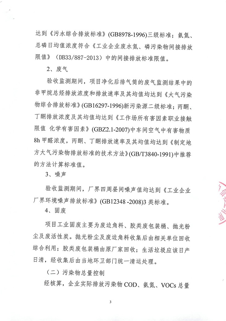 經(jīng)核算,企業(yè)實(shí)際排放污染物COD、氨氮、VOCs總量符合環(huán)評(píng)報(bào)告提出的總量控制值。