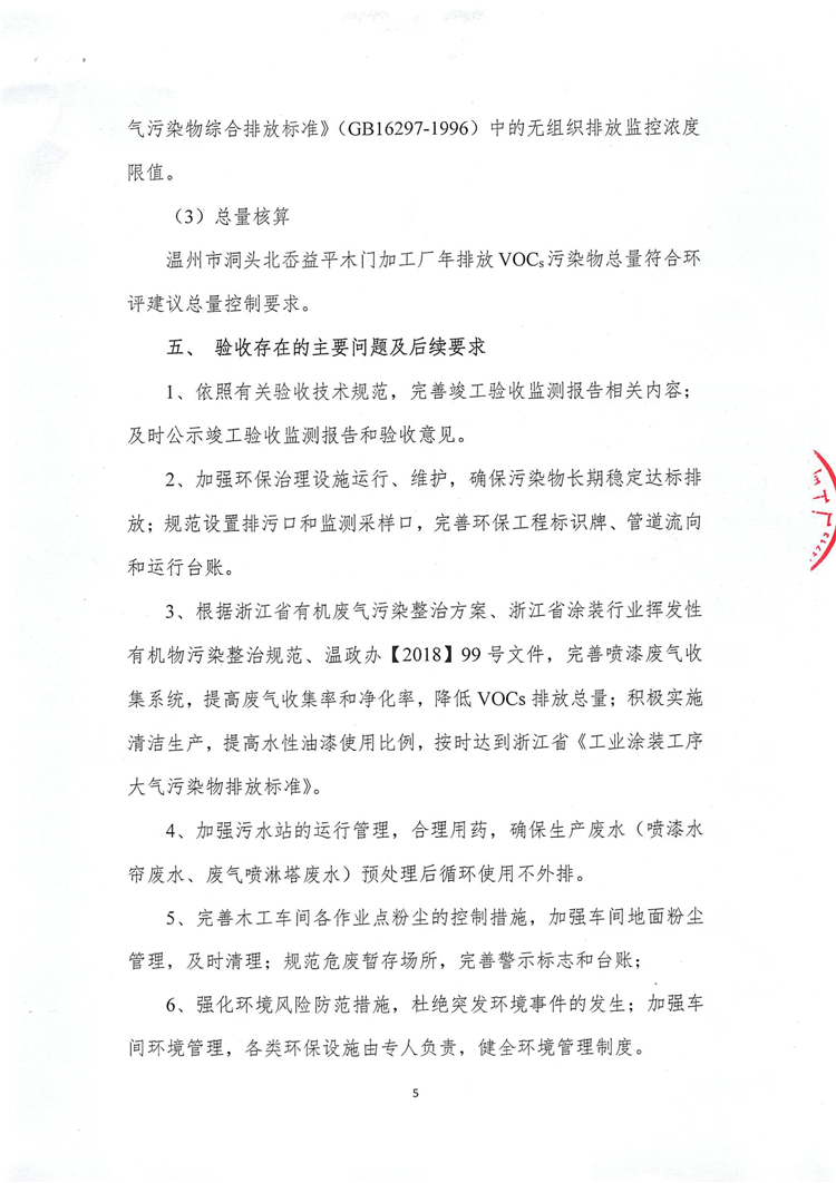溫州市洞頭北岙益平木門加工廠年排放VOCs污染物總量符合環(huán)評(píng)建議總量控制要求。
