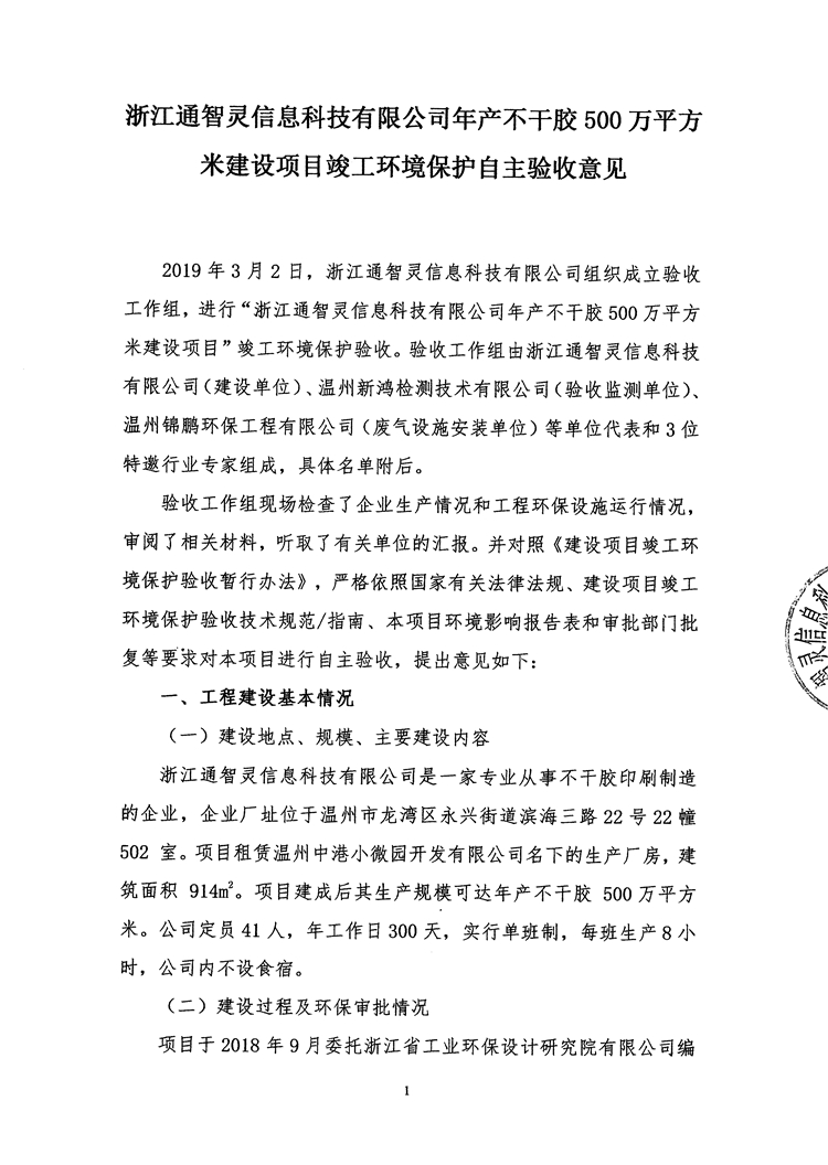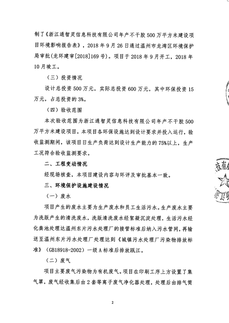 浙江通智靈信息科技有限公司年產(chǎn)不干膠500萬平方米建設(shè)項(xiàng)目竣工環(huán)境保護(hù)自主驗(yàn)收——公示