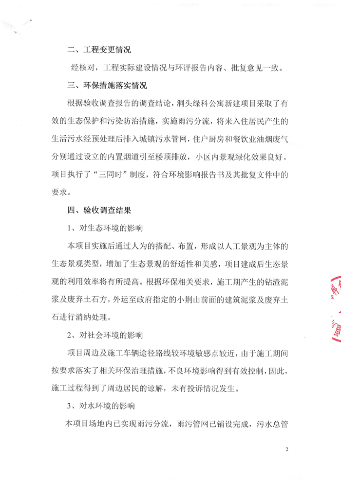 根據(jù)驗(yàn)收調(diào)查報(bào)告的調(diào)查結(jié)論,洞頭綠科公寓新建項(xiàng)目采取了有效的生態(tài)保護(hù)和污染防治措施,實(shí)施雨污分流,將來入住居民產(chǎn)生的生活污水經(jīng)預(yù)處理后排入城鎮(zhèn)污水管網(wǎng),住戶廚房和餐飲業(yè)油煙廢氣分別通過設(shè)立的內(nèi)置煙道引至樓頂排放,小區(qū)內(nèi)景觀綠化效果良好。項(xiàng)目執(zhí)行了“三同時(shí)”制度,符合環(huán)境影響報(bào)告書及其批復(fù)文件中的要求。